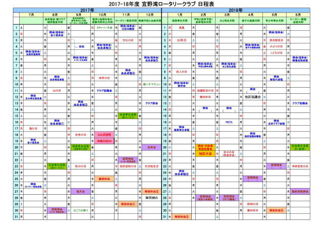 2017-18年度日程表(永山年度)